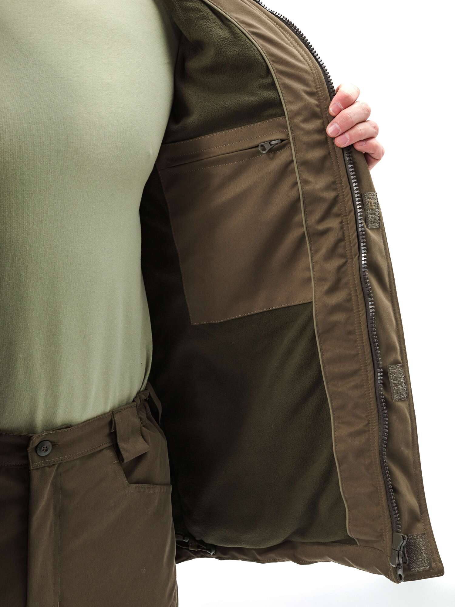 - подкладка полочек и спинки из флиса с одним слоем утеплителя, на уровне груди накладные карманы: левый – со входом на молнию, правый – с глухим клапаном