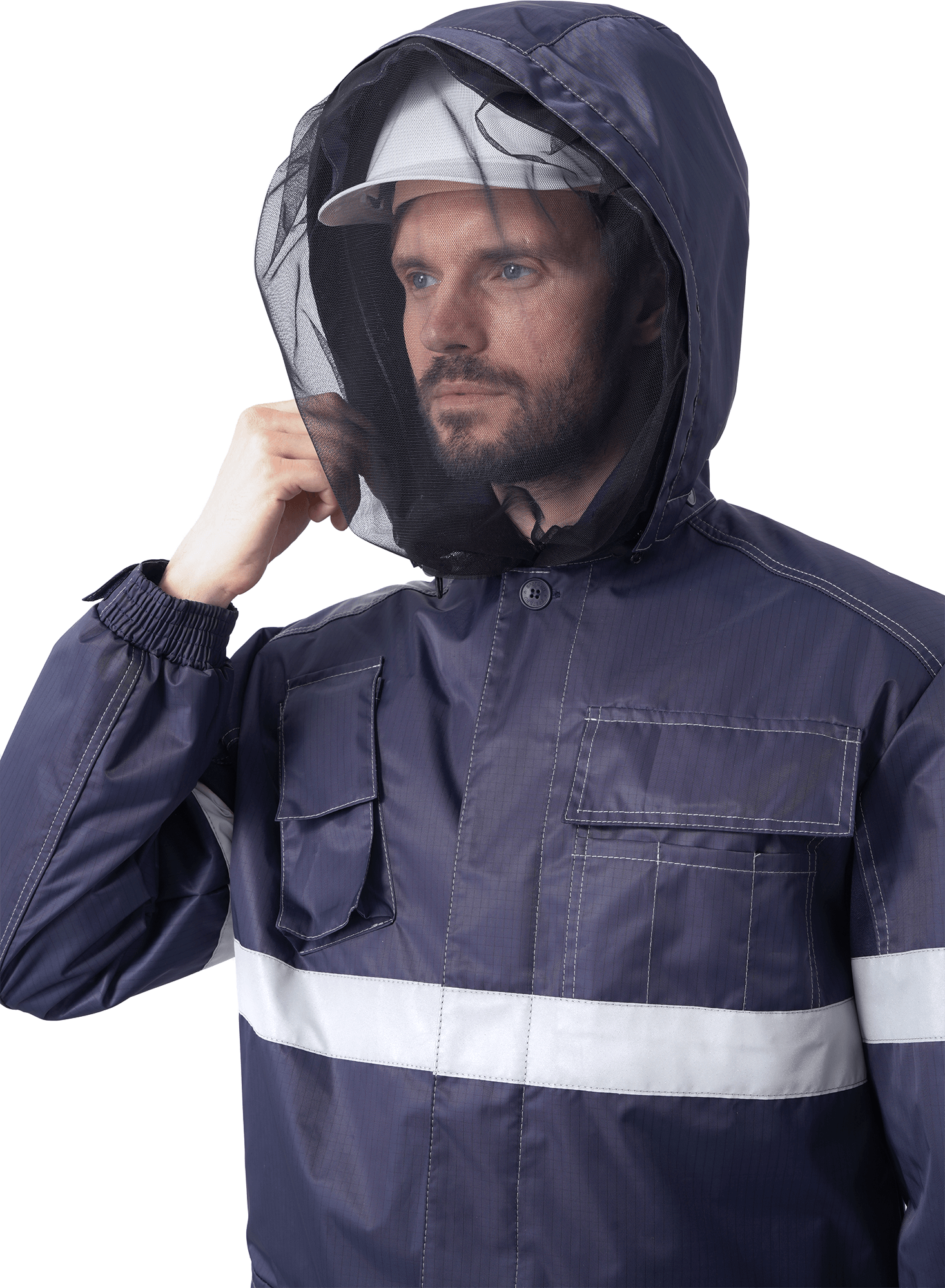 • вентиляционные отверстия в области лопаток с сеткой, в подмышечных впадинах с двойной сеткой