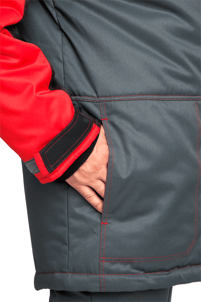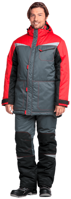 Костюм «КМ-10 ЛЮКС» утеплённый, серый с красным