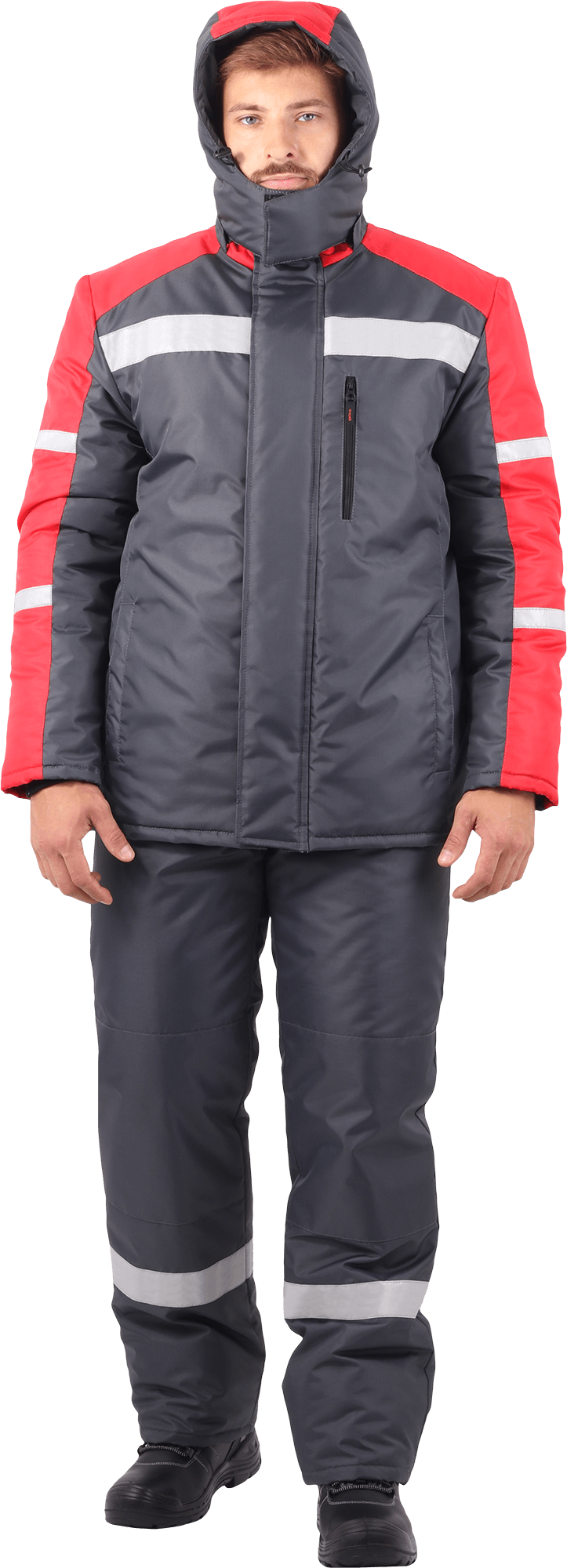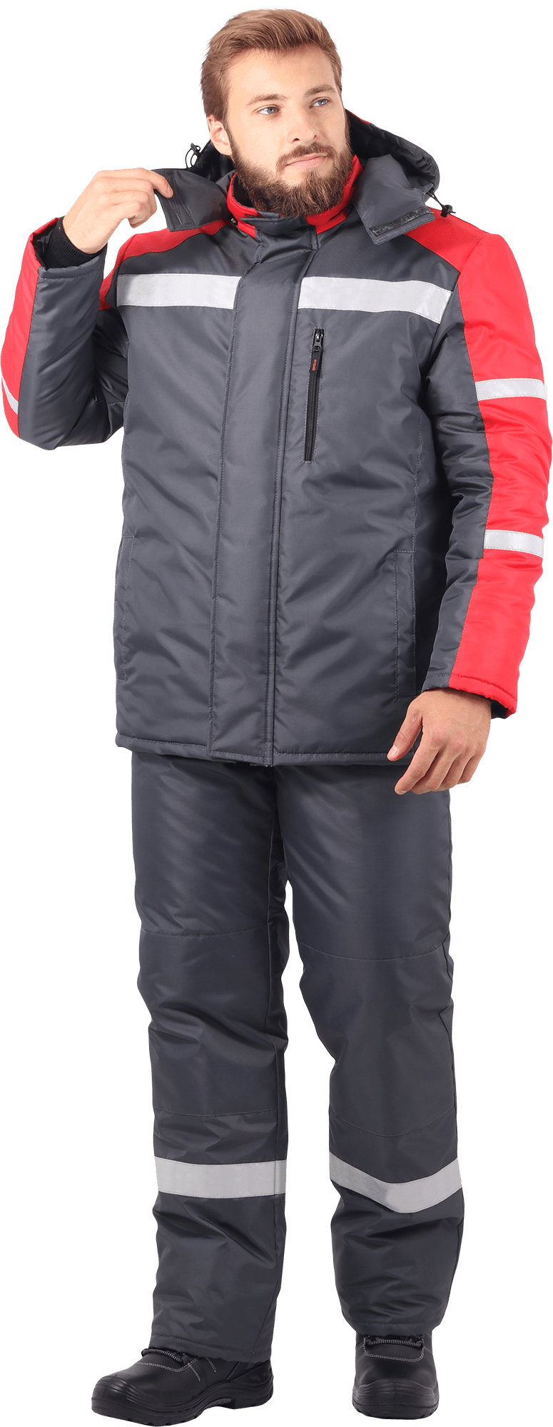 Куртка "Роуд" зимняя, серый-красный