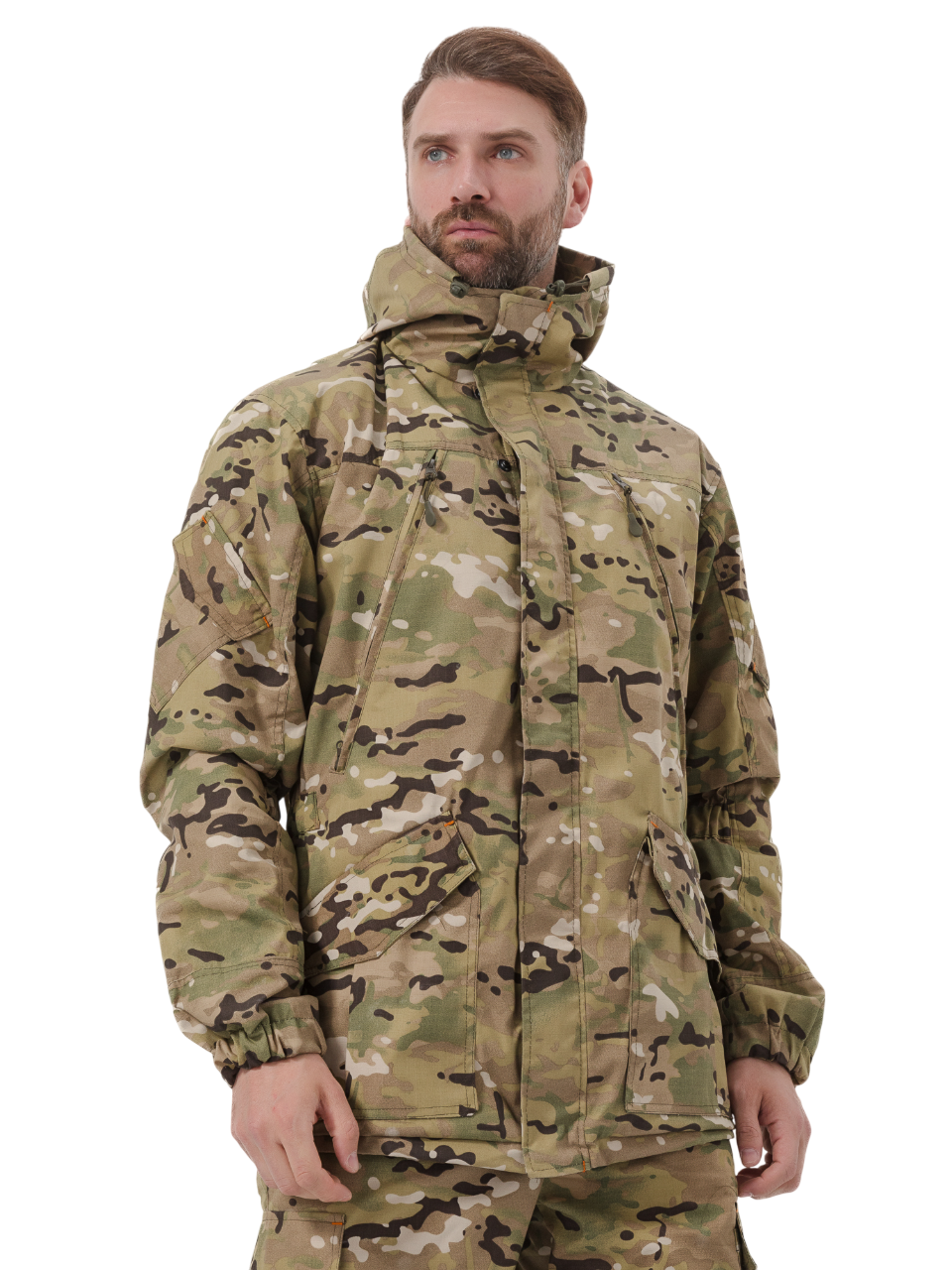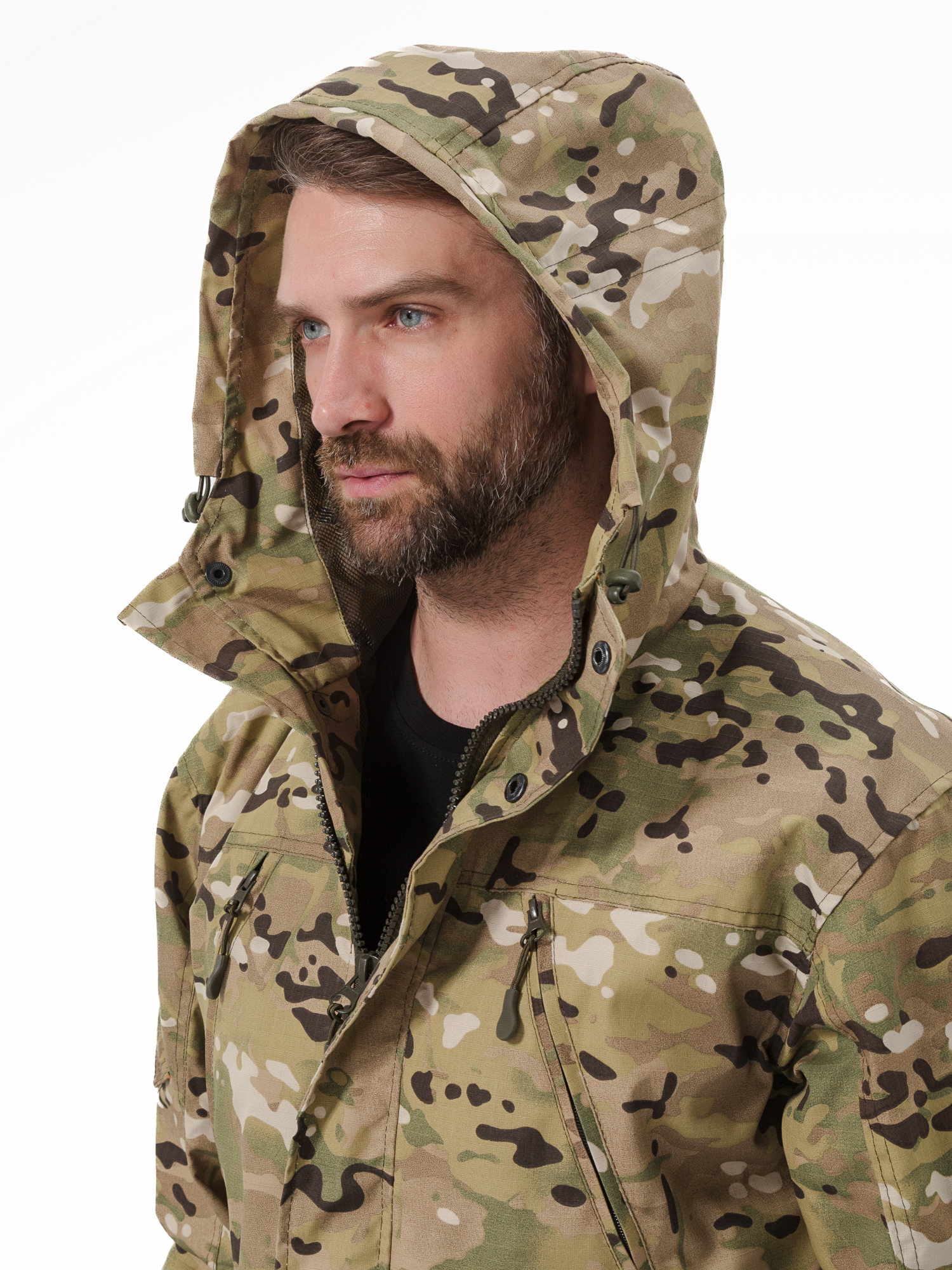 • центральная застежка-молния с жаккардовым пуллером и ветрозащитным клапаном на потайных кнопках