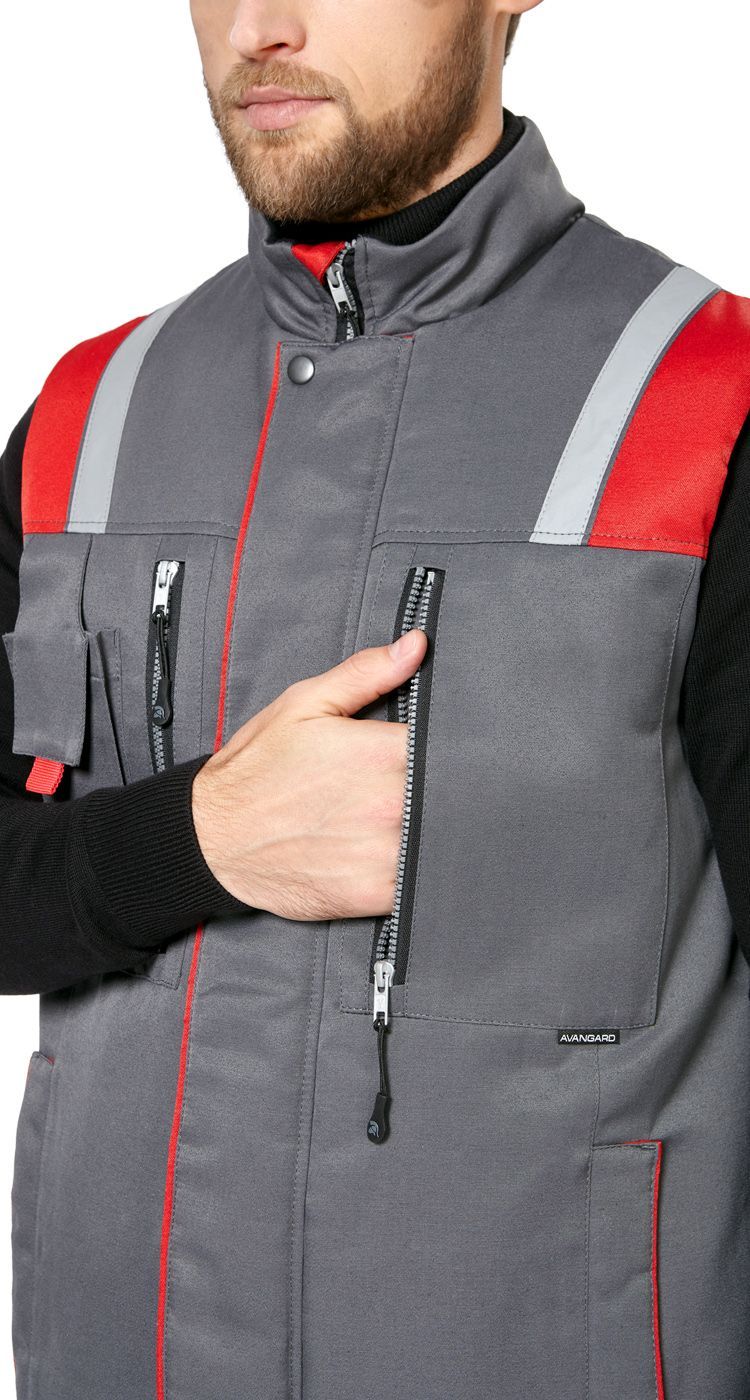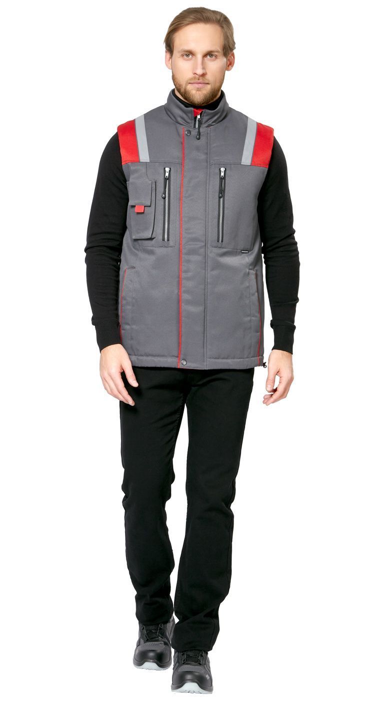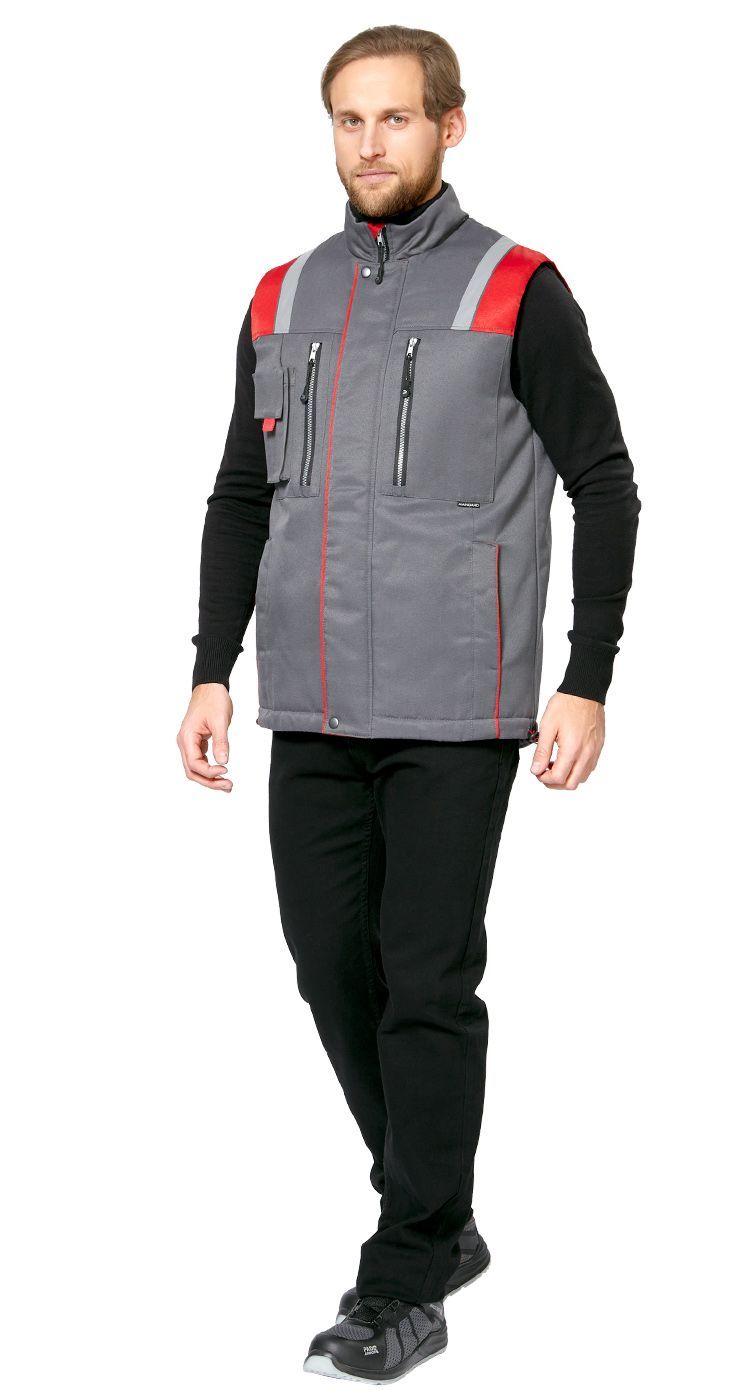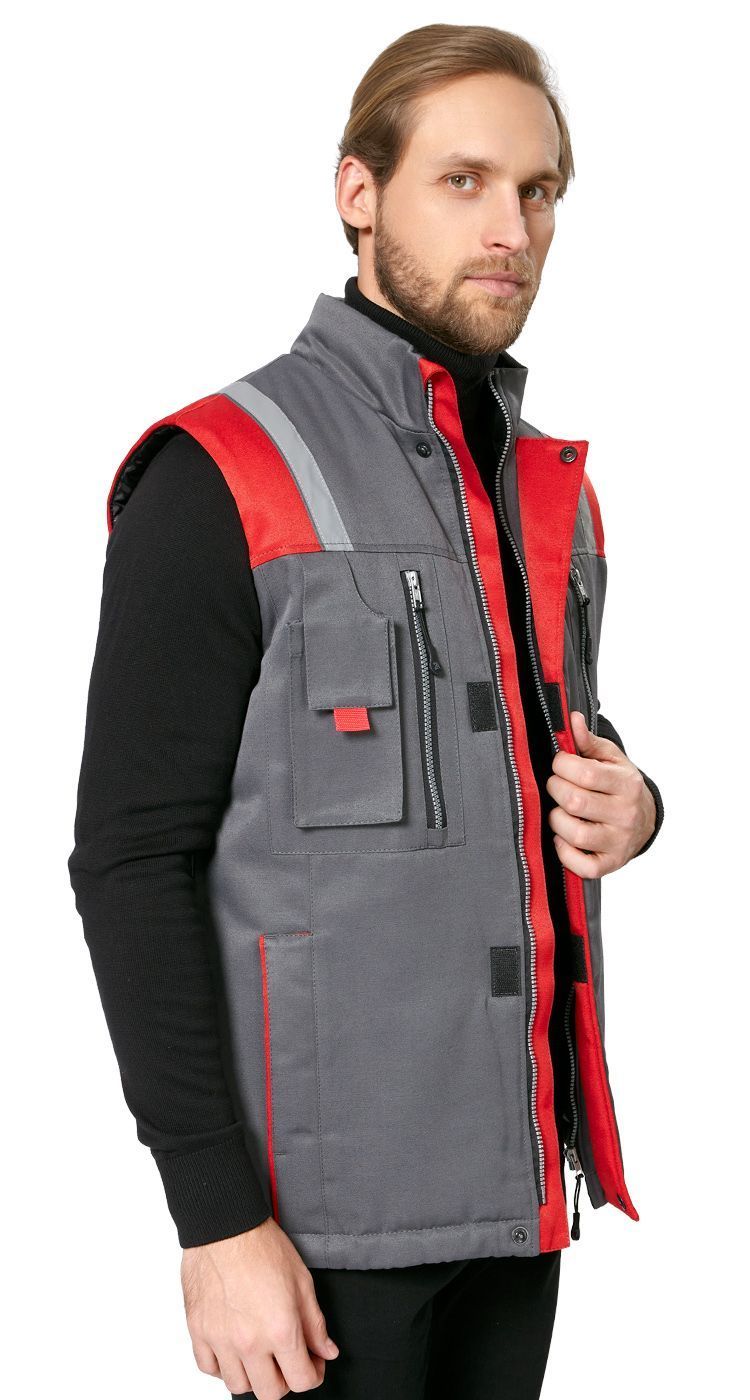 Жилет мужской утепленный рабочий "Авангард" серый-красный