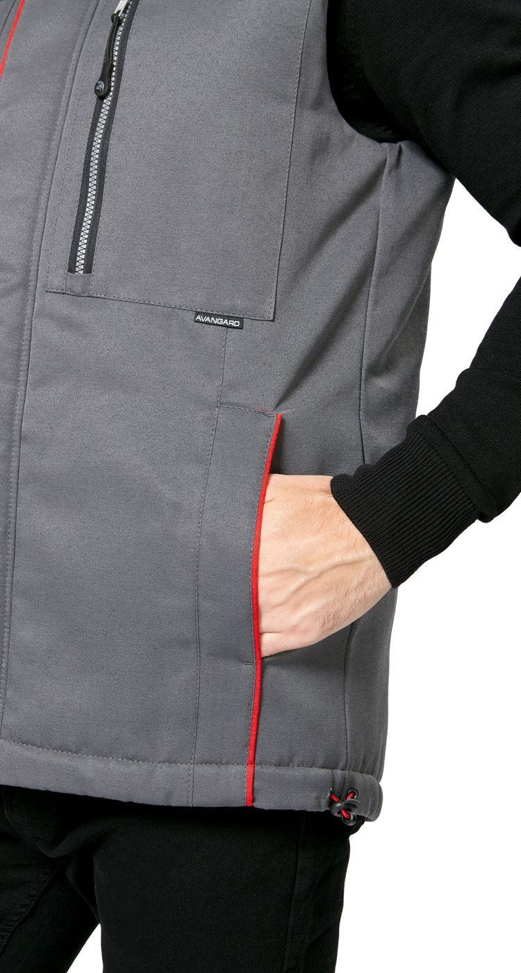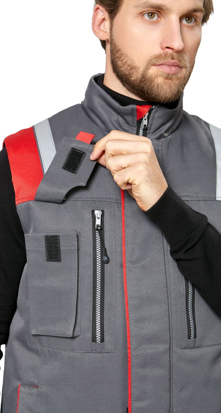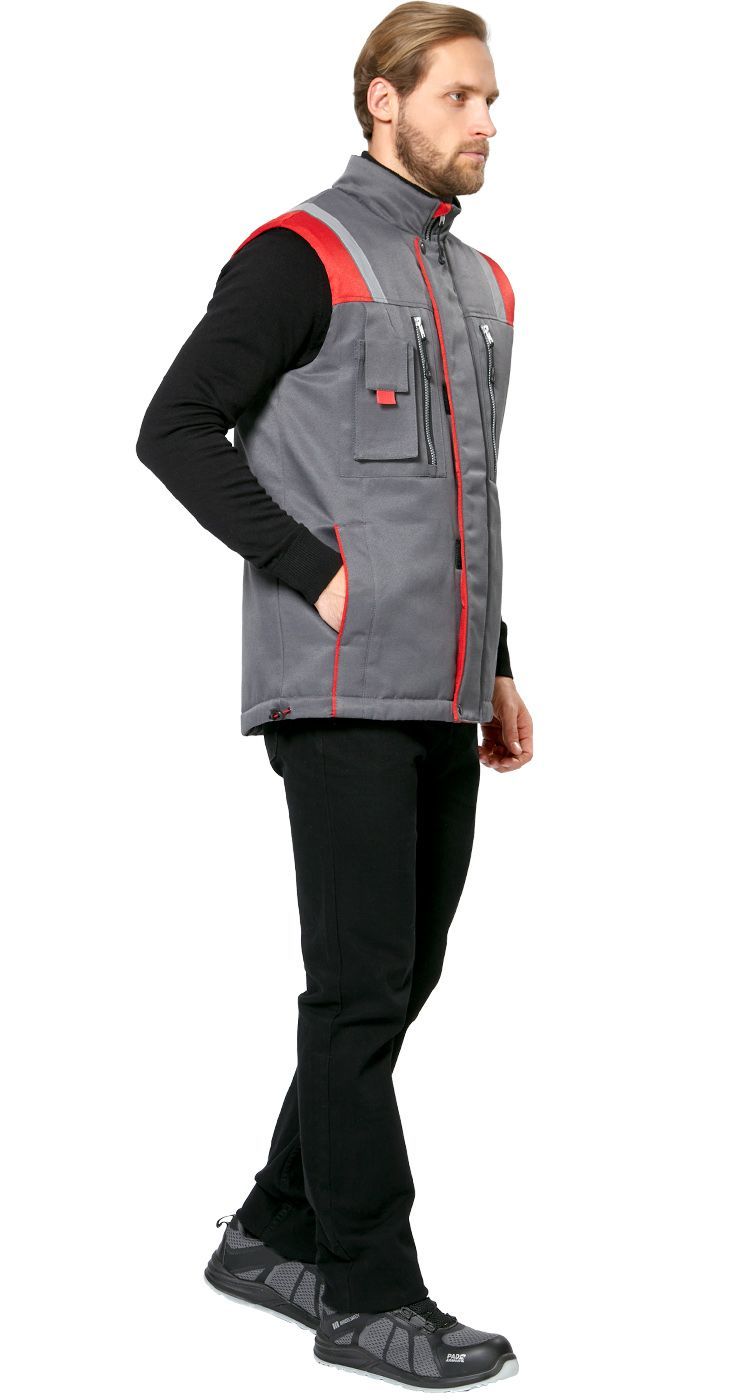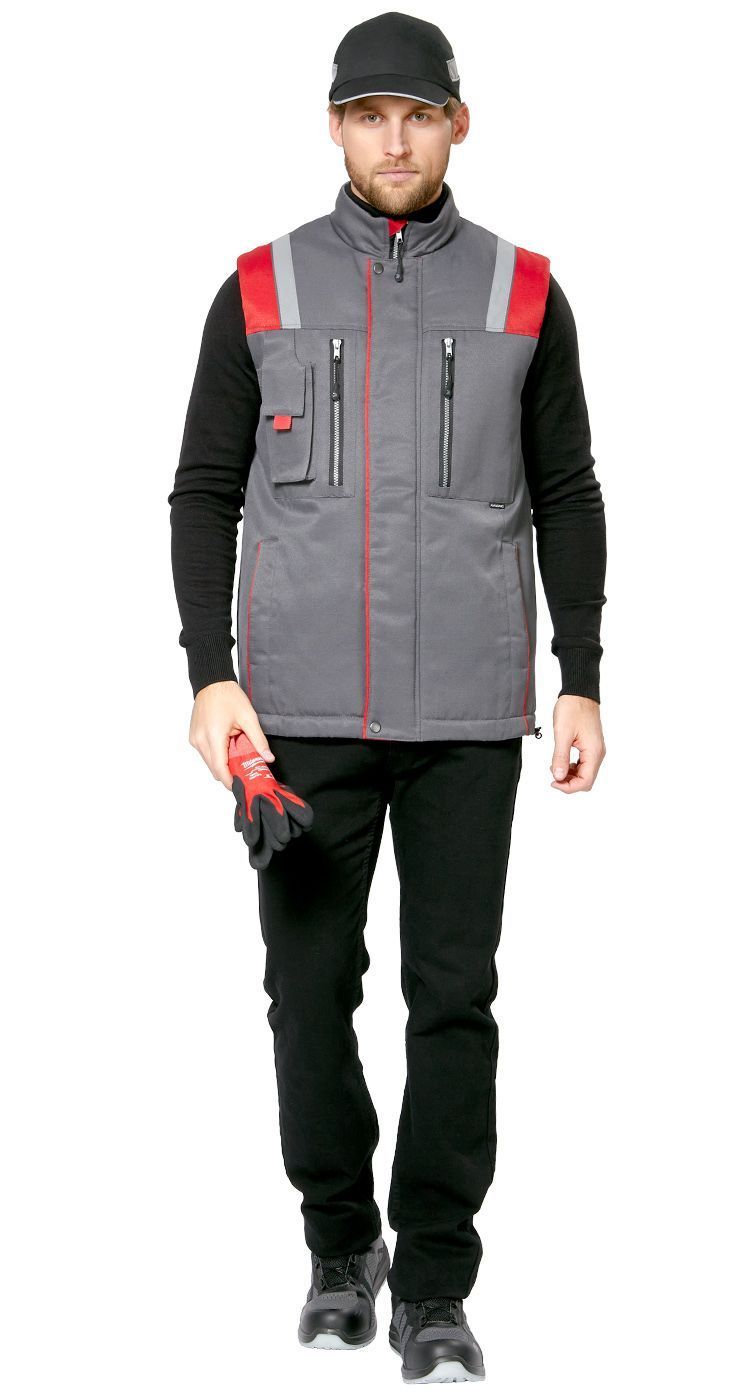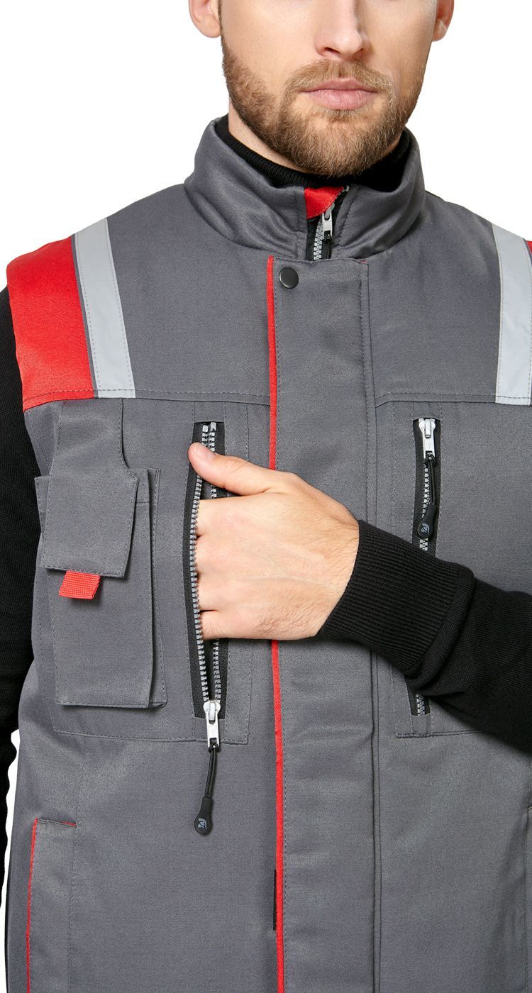 Жилет мужской утепленный рабочий "Авангард" серый-красный