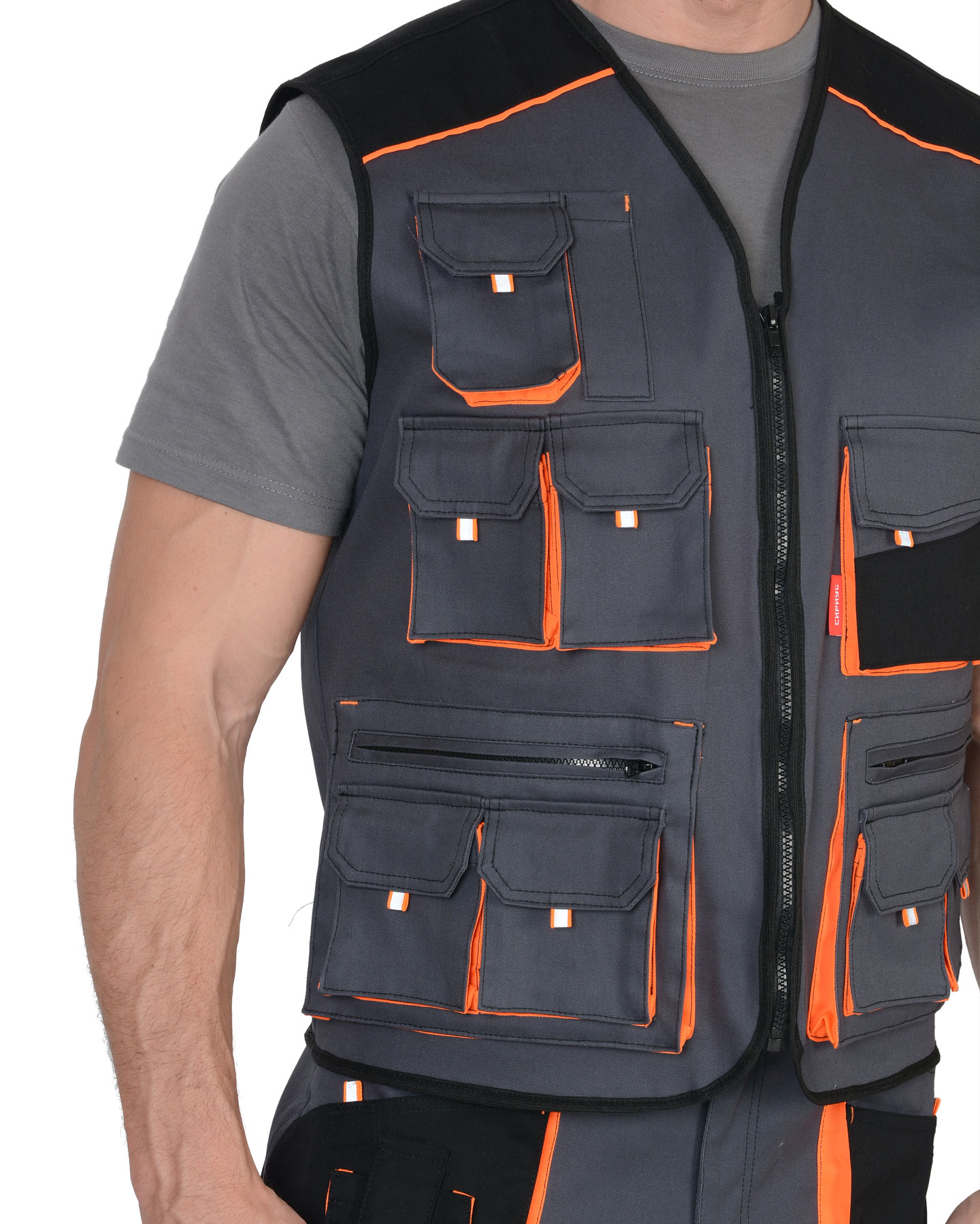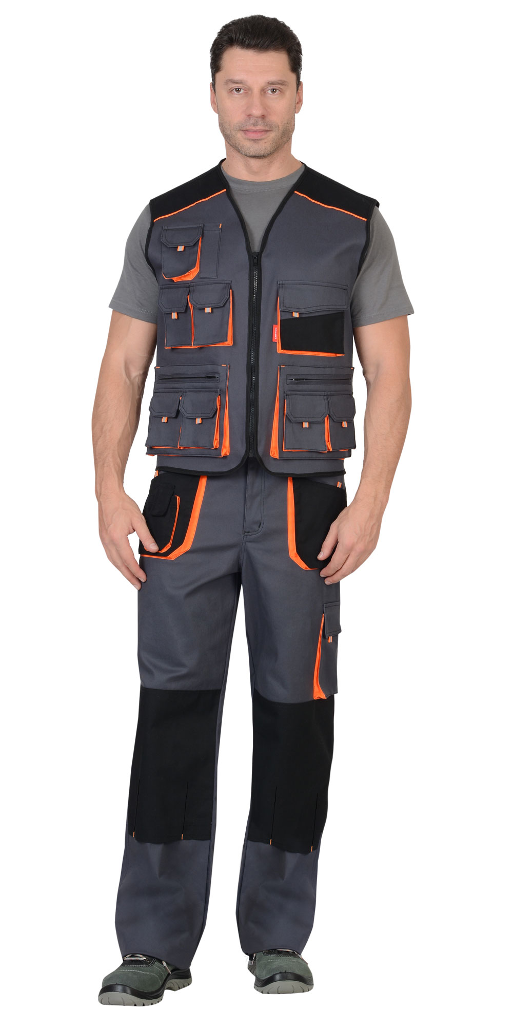 Жилет "МАНХЕТТЕН" т.серый с оранж. и черным